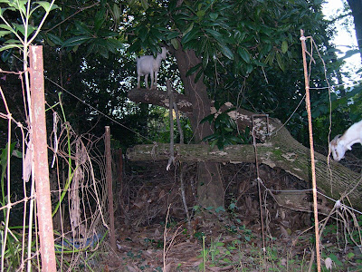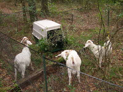 First the good news. The herd has successfully removed all privet from the back yard. Only their bare, leafless stalks remain. Like the Elephant Graveyard of invasive exotics. With my goats replacing the three spooky hyenas. I'll get pictures of skeletal plants uploaded soon.