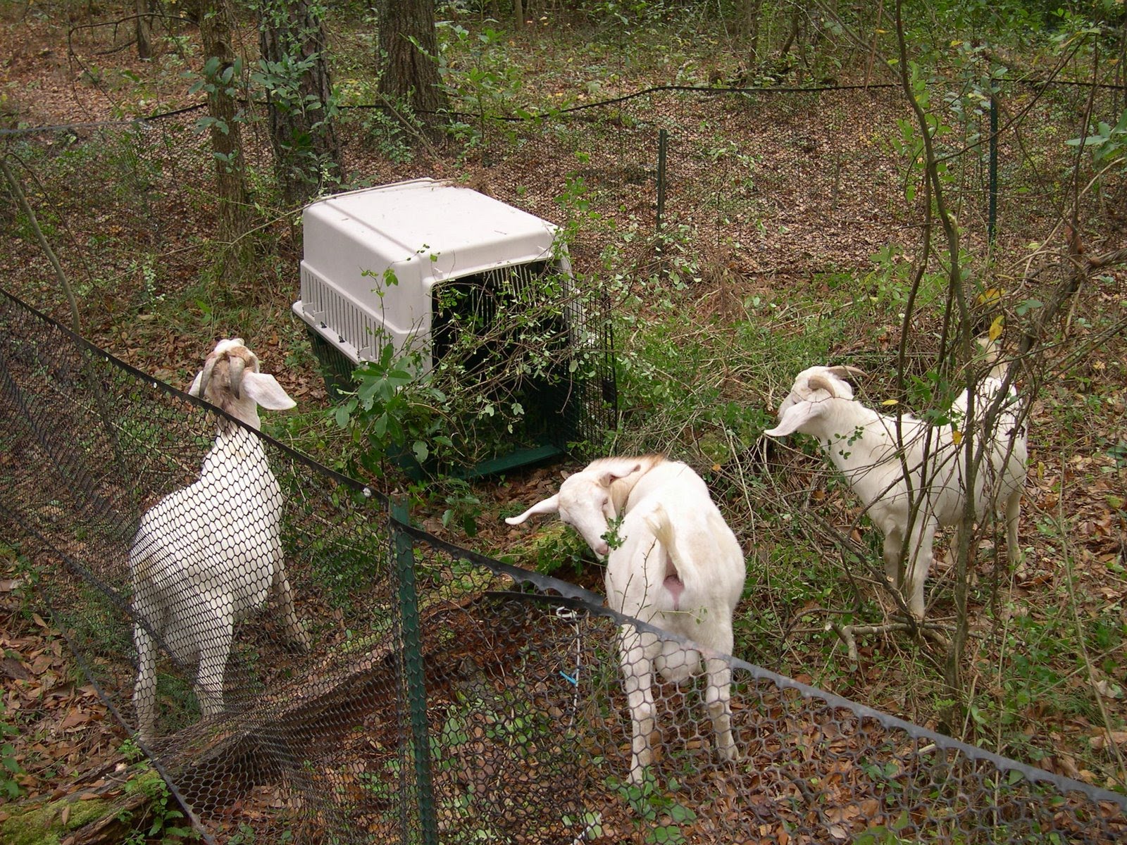 There were a few complication with the fencing. This black plastic stuff just won't cut it. It's too brittle and the goats can lean on it way too easily. Some taller, orange construction fencing might do the trick, especially in terms of mobility. And then electrical fencing is always an option if you really wanted to be temporary. If you had the time and resources, the best bet would be to string up hog wire around the entire area and let the goats do their thing. It wouldn't take long for a small herd of goats to make an obvious dent in a privet infested lot like 5 Acre Woods.