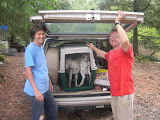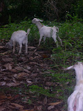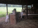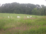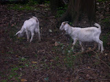 What a day yesterday was. Started around 7:00 AM with a biscuit and gravy from the dining hall, then off to the Dougie House to do some last minute repairs to the fence. I got rained on briefly, but there's enough trees on the property to make light sprinkles bearable. There must have been some fraternizing last night, because I think I spooked a few co-eds while working close to the downstairs windows. The unnamed pack of females emerged from the basement, wished me luck with my goats, and started off on their "walk of shame."