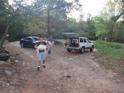 Below are this year's two new goat herders. I played the role of goat broker/transporter, linking Willy (foreground) and Dana with Miss Charlie. Everything went smoothly - as in no bloody foreheads.