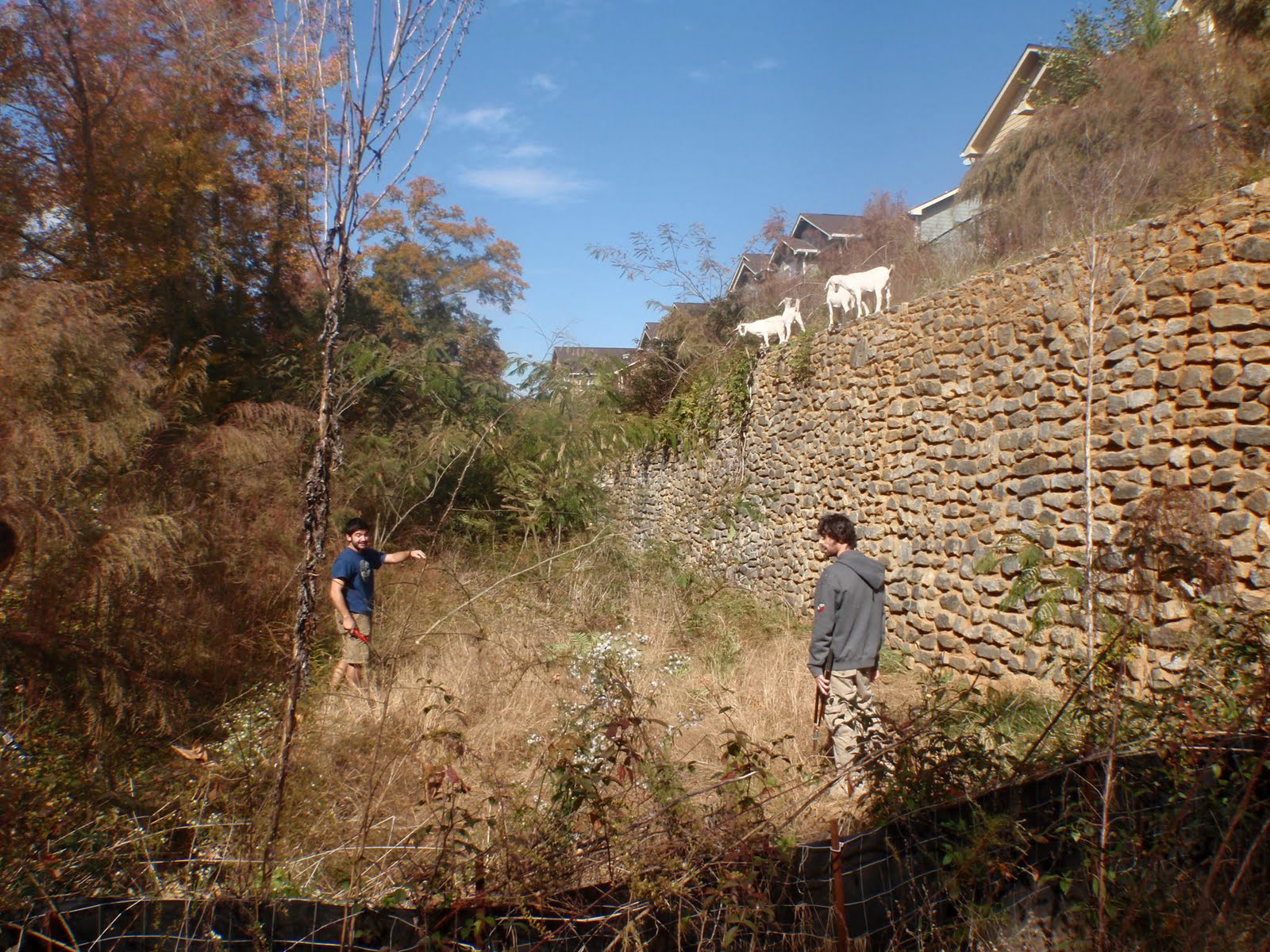Click on the picture above to see a few more pictures of this year's chew crew going to town in a fenced-in, overgrown detention pond in one of Athens' first affordable housing complexes, 4th Street Village.