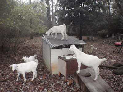 Because of exams, work schedules, and the holiday break, it was decided that the goats would remain on Dana and Mikey's property, where they can continue to destroy the backyard's privet, honeysuckle, and English ivy population until everyone returns after the New Year. Then, sometime during the second or third week of January, all four goats will be killed, slow roasted, and celebrated with another Dougie caliber cookout.