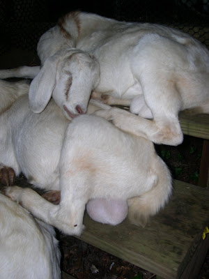 These steps seem to be the goats newest favorite hangout. If they're not eating, odds are they're stacked up on these steps taking a power nap.